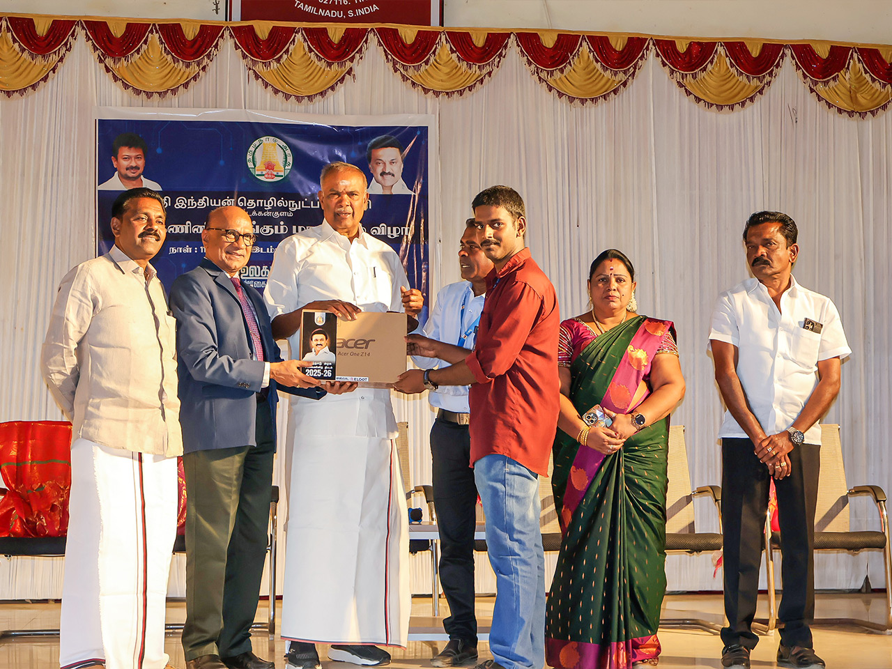Joy University students proudly received laptops at the Government of Tamil Nadu Laptop Distribution Ceremony held on 11 February 2026 at The Indian Polytechnic College, Vadakangulam. The event was graced by the Honourable Speaker of the Legislative Assembly, Thiru M. Appavu, MLA, who distributed the laptops and addressed the students, encouraging them to effectively use technology for learning, innovation,
