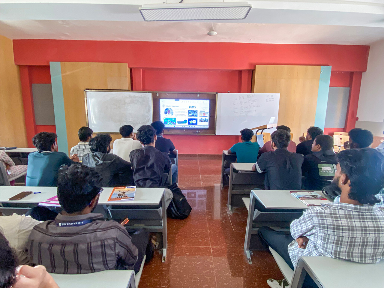 he Department of Aeronautical Engineering, School of Engineering & Technology, Joy University, organized a Tech Talk on “Advanced Materials for Industrial Applications” on 23rd February 2026. The session highlighted emerging material technologies, industrial use cases, and global research trends, offering students valuable exposure to industry-driven innovations and practical engineering applications.