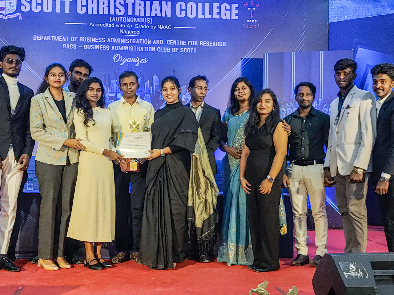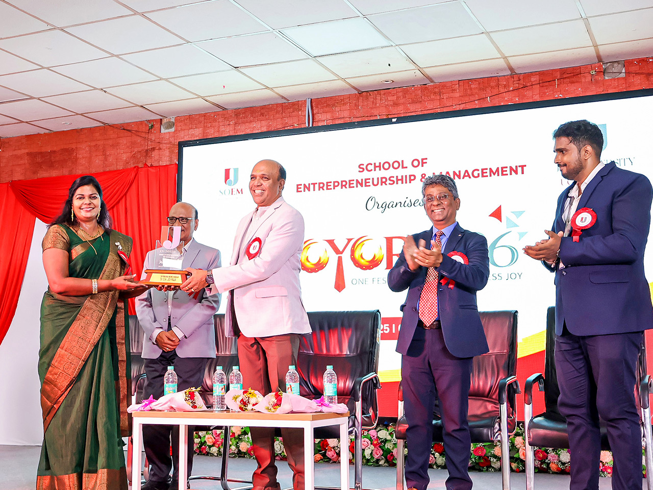 Joy University proudly congratulates the students of the School of Entrepreneurship and Management (SOEM) for securing First Prize in the Corporate Walk Competition at Corpenza’2K26, hosted by Scott Christian College. Demonstrating exceptional confidence, professionalism, teamwork, and corporate elegance, the students impressed the judges with their strong stage presence and polished presentation.