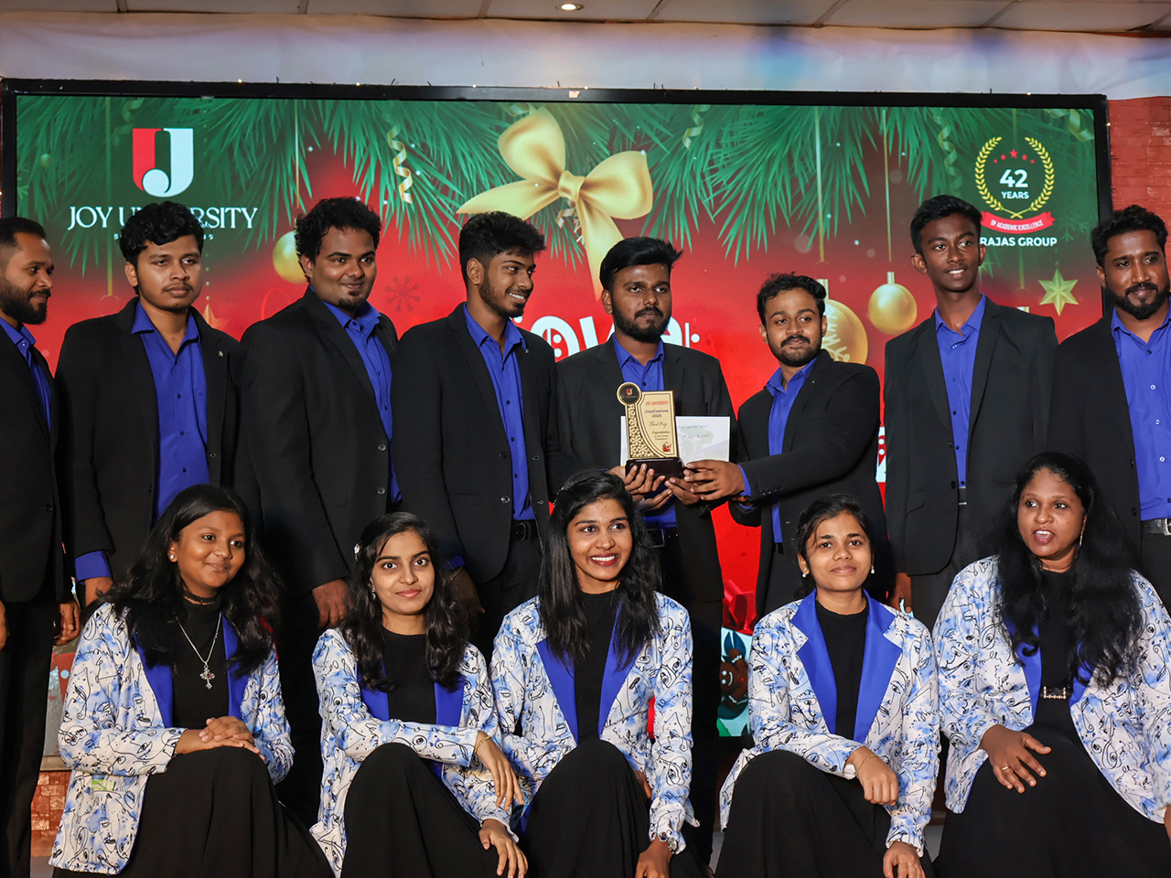 We are delighted to share that the Joy University Choir won the Second Prize in the Inter-Collegiate Carol Singing Competition held at Christober College of Arts and Science, Kallakadu. Their exceptional harmony, dedication, and festive spirit captivated the audience and judges alike.