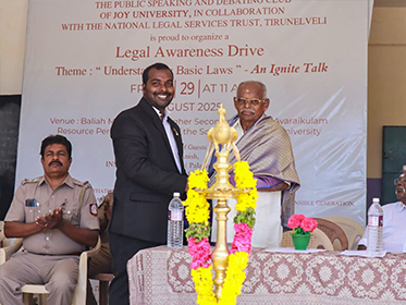 Joy University – School of Law (JU-SOL) offers B.A. LL.B (Hons) / B.B.A. LL.B (Hons) / LL.B (Hons) Programmes that focus on credit-based elective system, which helps the students’ flexibility and choice in the selection of courses apart from following the Rules and course Regulations of the Bar Council of India.