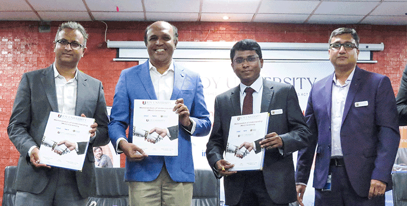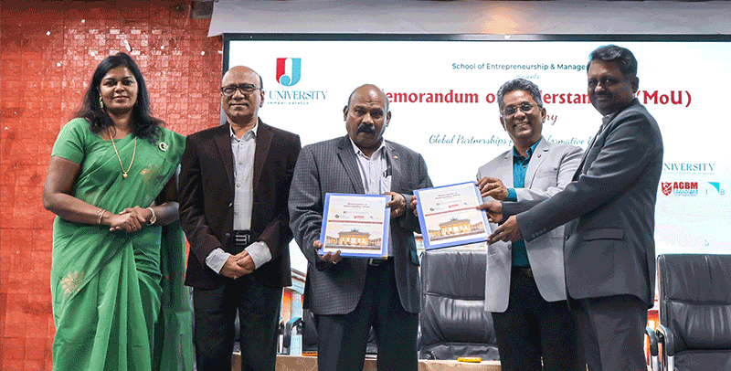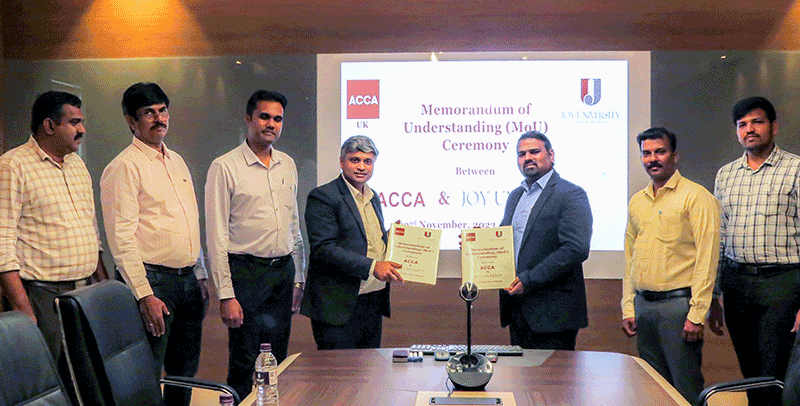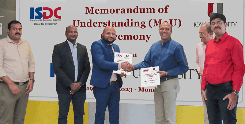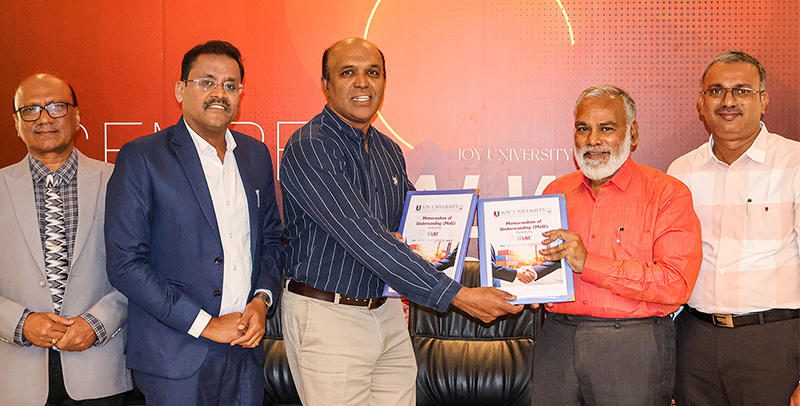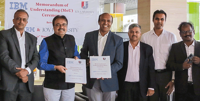 On March 31, 2023, Joy University signed a Memorandum of Un derstanding with IBM, marking a milestone in industry-academic collaboration. This partnership is designed to enrich curriculum development, enhance faculty training, and provide students with access to cutting-edge technologies in areas such as Artifi cial Intelligence, Cloud Computing, and Data Science. Through this MoU, Joy University aims to equip students with industry-rel evant skills, promote innovative research, and strengthen em ployability, reaffirming its commitment to delivering quality, fu ture-ready education.